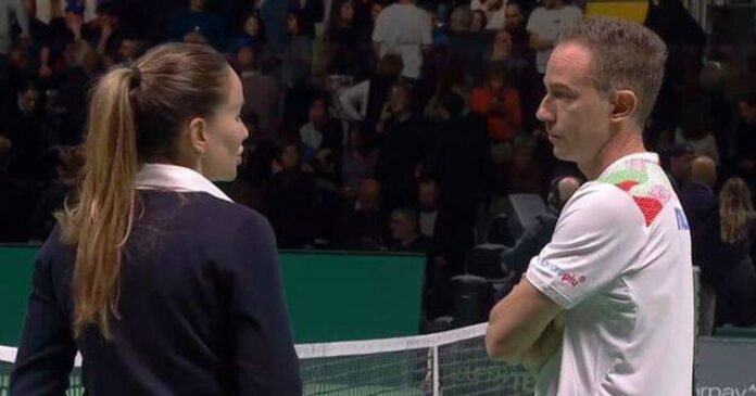 Umpire Marijana Veljovic conversed with the players during the break, while Italian captain Filippo Volandri offered advice to Cobolli. As the fan was escorted out of the stands, Parmar noted the potential delay in play for the individual’s safe removal.
