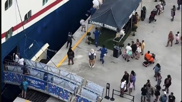 Dramatic images captured the moment a desperate mother leaped from a pier to rescue her four-year-old daughter who slipped into the water. The incident occurred at Carnival’s Celebration Key in the Bahamas, where the child got stuck between the Carnival Sunrise cruise ship and the dock. Crew members swiftly intervened, providing assistance by lowering ladders and life preservers into the water on December 21.