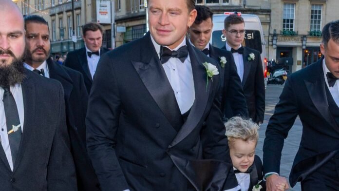 Olympic swimmer Adam Peaty was spotted arriving at his wedding ceremony with his bride, Holly Ramsay, while holding hands with his young son, George. The adorable boy looked charming in his miniature tuxedo and bow tie as he got ready to walk down the aisle.